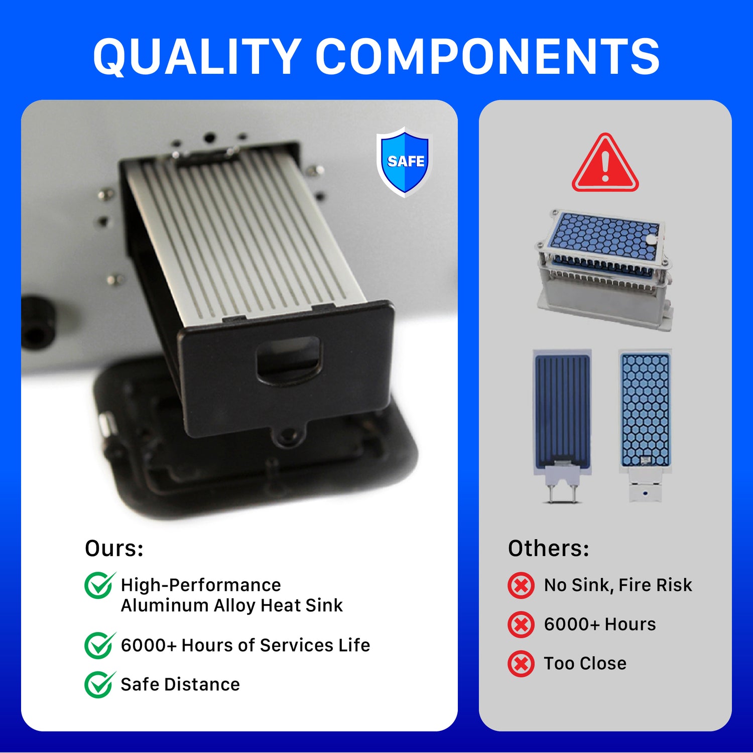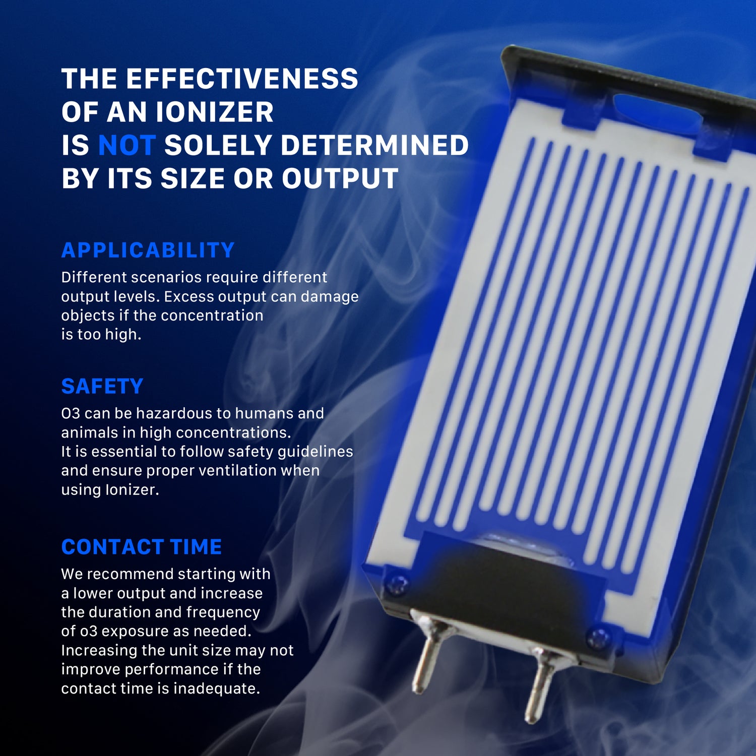 Our ozone generators are designed for safe, efficient odor elimination with adjustable output levels to suit different environments. The ozone plates are positioned with a safe distance to minimize fire risk, ensuring long-lasting, reliable performance. With extended working hours, our ozone generators offer both safety and durability. Always use in unoccupied spaces with proper ventilation for the best results. Trust in our quality products to provide safe, effective odor removal and peace of mind in any setting.